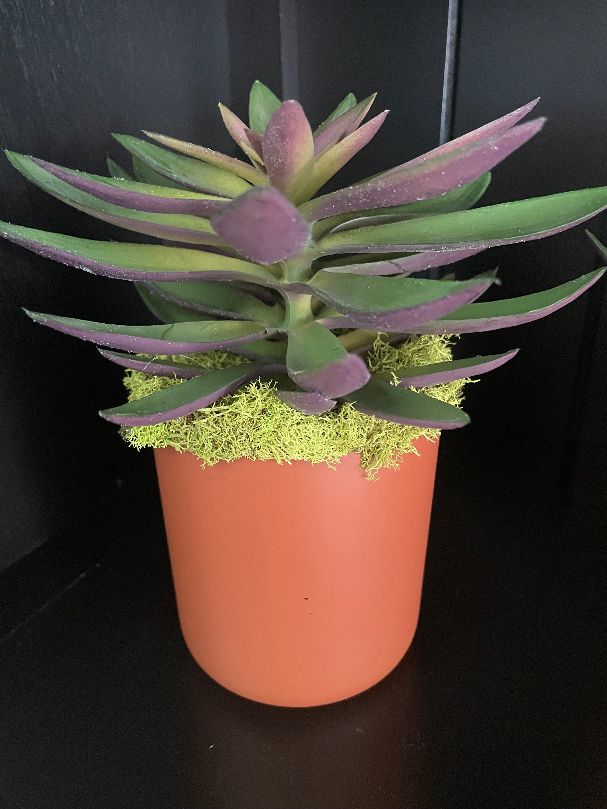 This funky artificial succulent is a perfect choice for adding some flair to your table centerpiece. Its flowering shape allows for easy pairing with other shorter succulents, creating a playful cluster.
