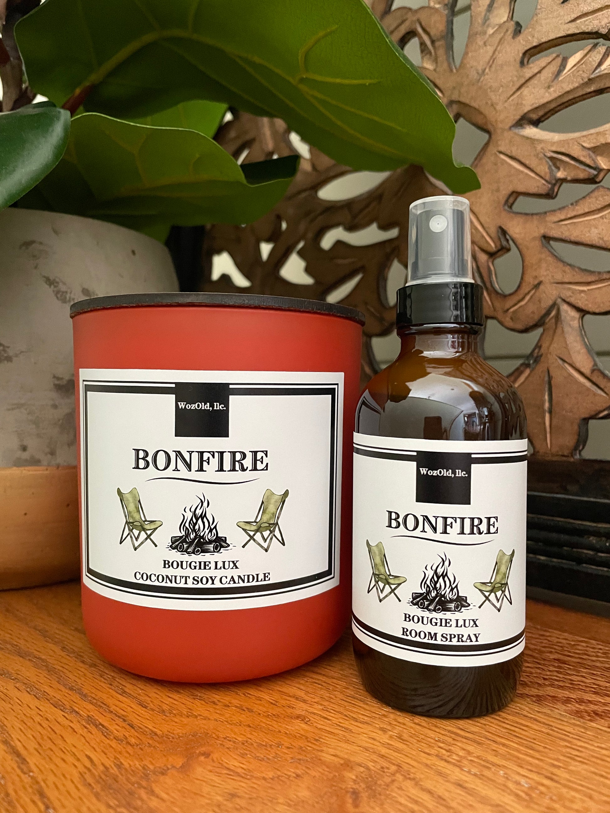 Included in this premium set: 4oz BONFIRE Room Spray & BONFIRE Coconut Soy Candle (roughly 14-16oz depending on wax/oil blend density)