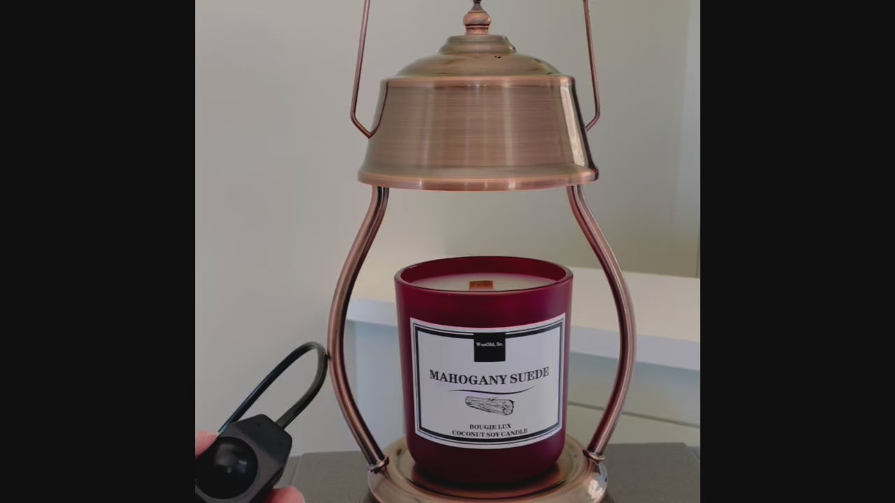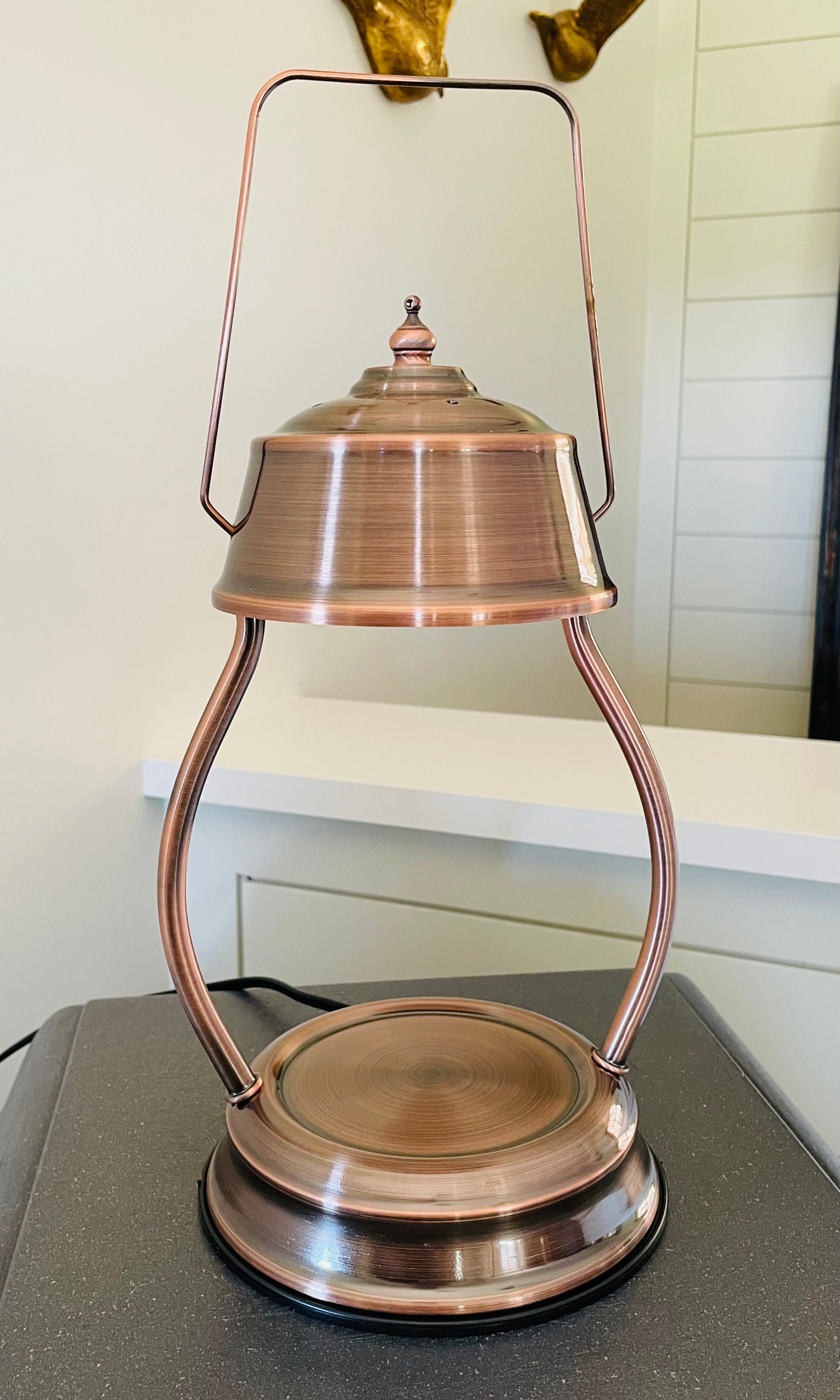Take your space to new heights with this classic copper lantern that effortlessly warms your cherished WozOld candles, filling the room with your favorite scent. The lantern features a dimmer switch and includes 2 light bulbs. Plug it in, adjust the lighting to set your mood, and let the luxurious aroma wrap around you like a cozy blanket. Makes a great gift for those that have a tendency to forget to "blow out the candle".