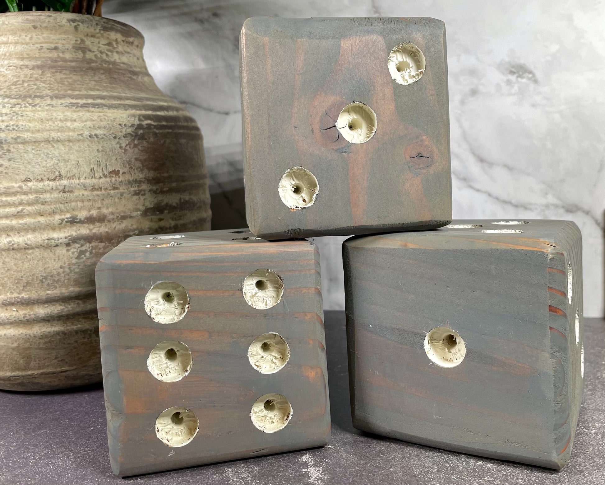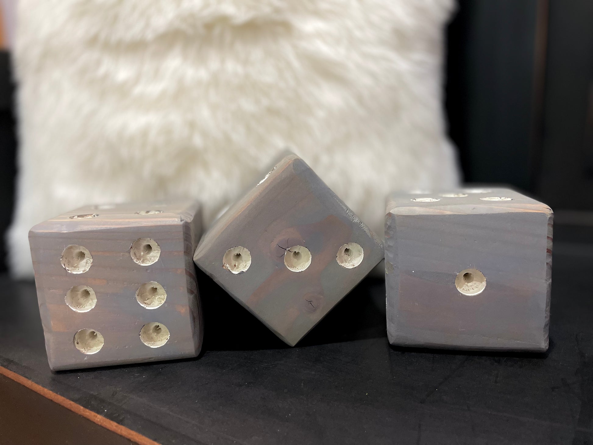 Good things come in 3's. Add a touch of luck to your home with our Gray handmade wooden dice. These fun decorative pieces are perfect for adding some character around the house. Roll the Dice and see where your style takes you!